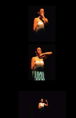 | Body installation, 14min. “...The sole truth we carry with from the moment of birth is death and we transcend ourselves through our art...On stage we make confessions, and we transform spaces. We cross boundaries and we take our thoughts and concerns beyond limits. And here today I express my indignation at the insistence of all kinds of authority to make permanent the transience of artistic events, to impose the idea that all we deserve is a wretched levelling of us all, since the only answer we receive to our endless dialogic discussions is an attempt at monologue. ...And since no one will listen to me I sit here tonight and wait for them to hammer in the nails on a cross I myself elected to carve out.” |